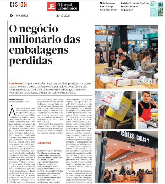 A empresa francesa Colis Colis, especializada na venda de – encomendas perdidas – pacotes não reclamados, inaugurou este mês a sua primeira loja em Portugal, no centro comercial Ubbo, em Lisboa. A iniciativa despertou curiosidade e atraiu filas de clientes ansiosos por descobrir o que os caixotes recheados de encomendas perdidas têm para oferecer.